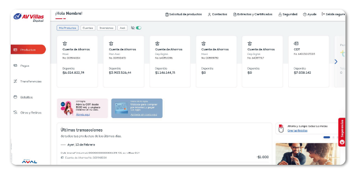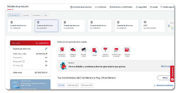 6. Al igual puedes realizar el bloqueo de tu cuenta ingresando a las acciones rápidas de tu producto en la opción “Bloquear cuenta”, ten presente que para hacer el desbloqueo debes dirigirte a una de nuestras oficinas.