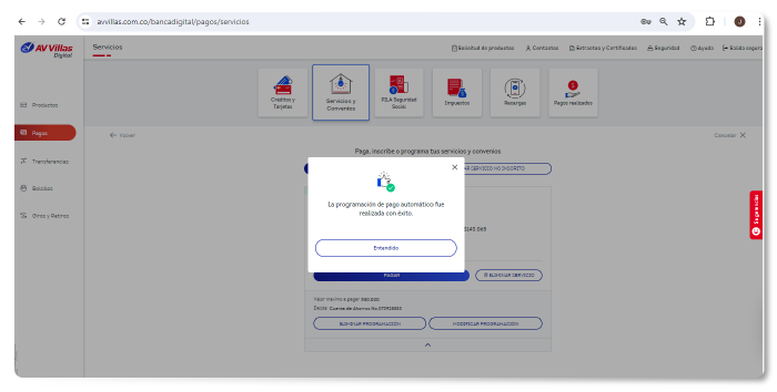 5. ¡Y listo! Tu programación de pago ha sido realizada.